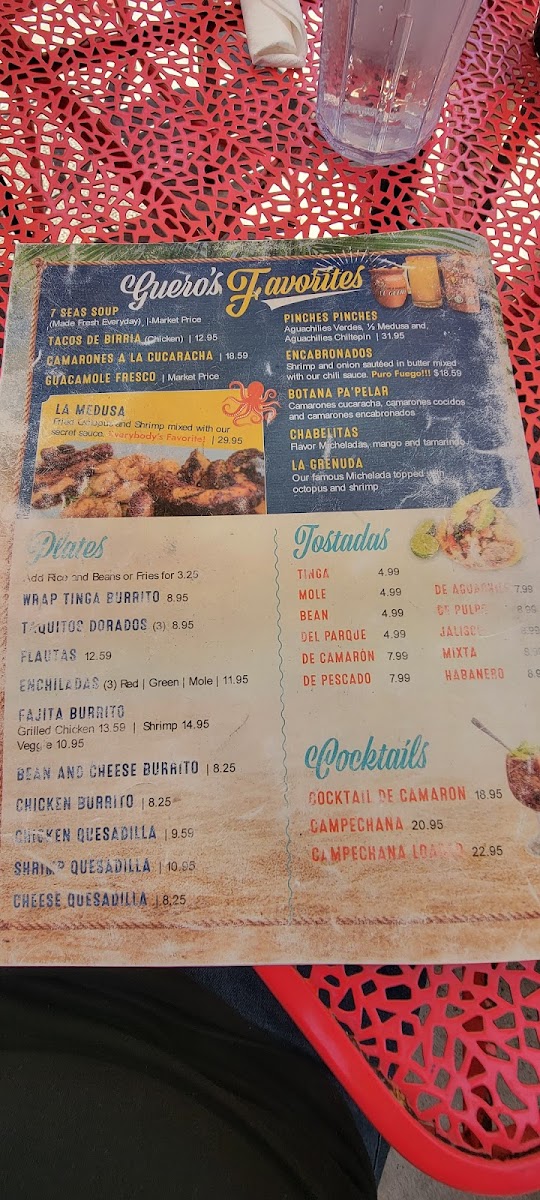The menu features a delightful array of dishes that showcase fresh, bold ingredients. Start with the Seven Seas Soup, a robust seafood delight, or indulge in La Medusa, a fried octopus and shrimp dish that's a crowd favorite. If you're in the mood for tacos, the Tacos De Birria are a must-try, offering tender chicken wrapped in soft tortillas.